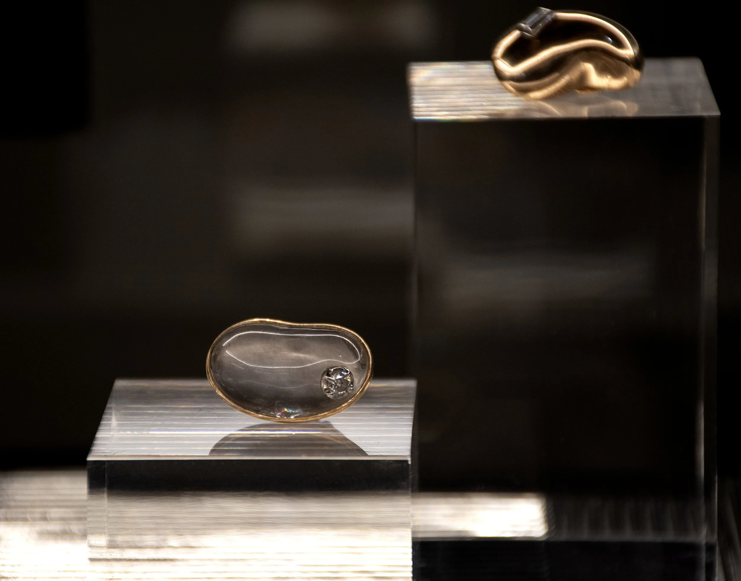 This connection between architecture and jewellery becomes especially clear in her signature forms. “I work a lot with organic shapes,” she explains. “It started with a dune I saw in Lençóis Maranhenses in Brazil. I took that shape and translated it into jewellery.” These flowing, sculptural lines appear across her pieces, creating a sense of movement and softness.