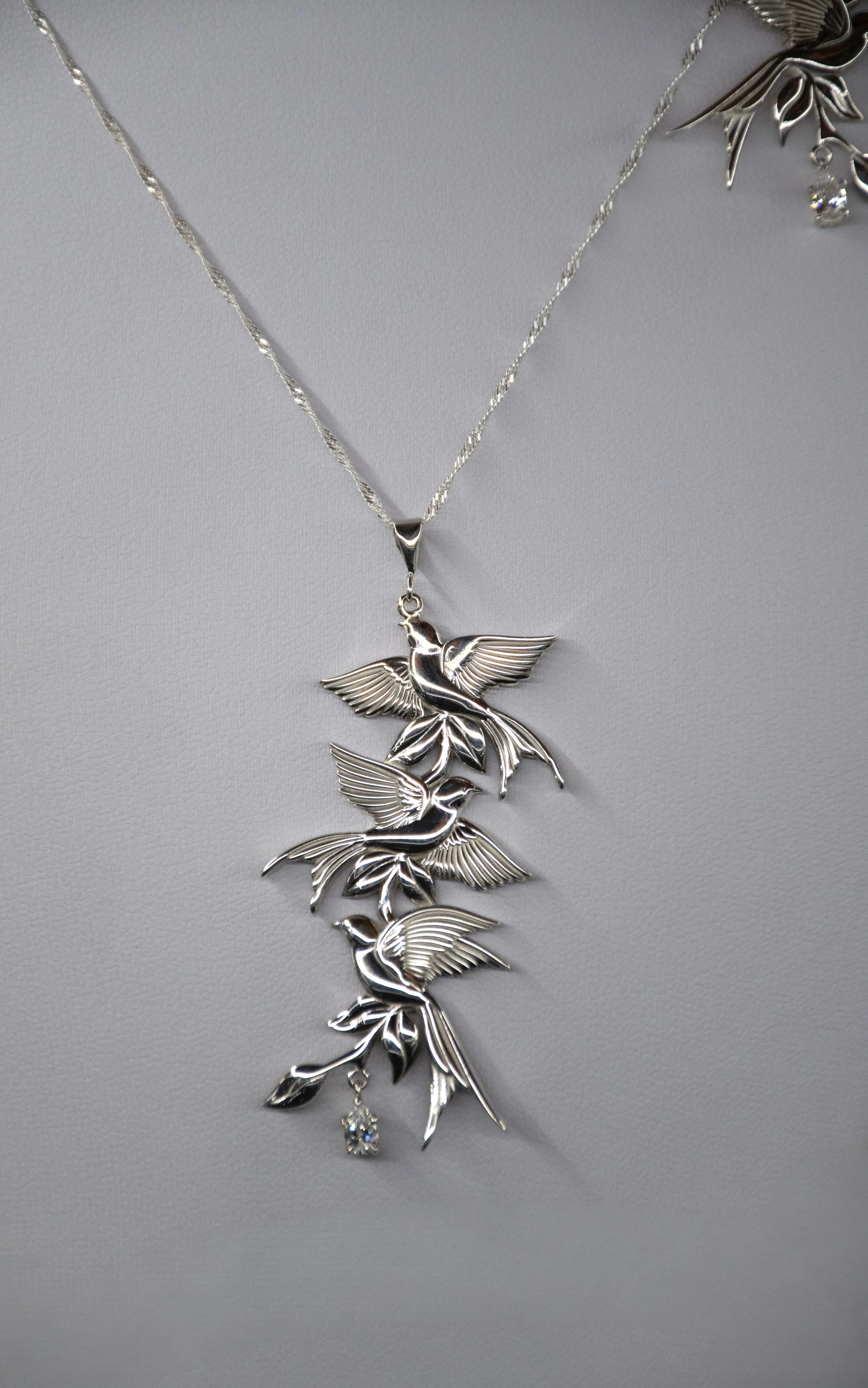 One of the pieces that immediately caught my attention was a set featuring delicate birds, adorned with diamonds.